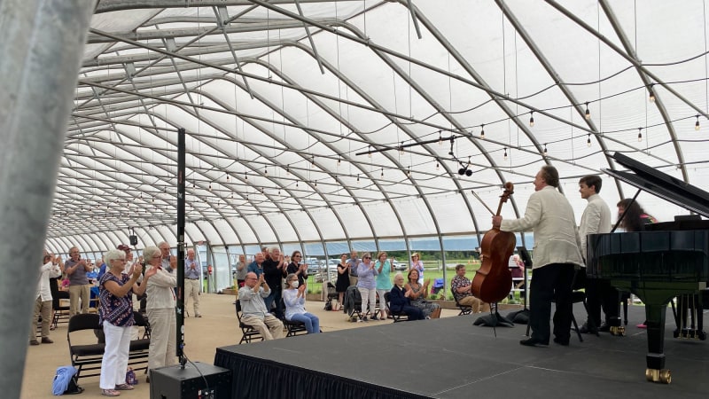 September 3, 2021This summer the Saratoga Performing Arts Center partnered with Pitney Meadows Community Farm to bring back the Chamber Music Society of Lincoln Center for its annual Saratoga Springs residency. The new "CMS at the Meadows" series were the first live performances that SPAC presented since the 2020 season was cancelled as a result of the COVID-19 pandemic. The performances, limited to 200 attendees per show, were held in Pitney Meadows Community Farm's beautiful open-air High Tunnel greenhouse, adhering to carefully mapped out, socially-distanced seating and rigorous COVID-19 protocols.