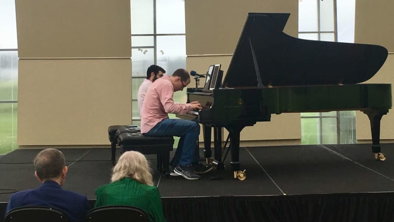 A further highlight of the summer was a thrilling afternoon of piano music performed by Michael Stephen Brown, Gilles Vonsattel, Ursula Oppens, and Jerome Lowenthal. The program featured solo and four-hands works by Barber, Mendelssohn, Debussy, and Ravel, as well as the world preimere of Twelve Blocks composed by Michael Stephen Brown.