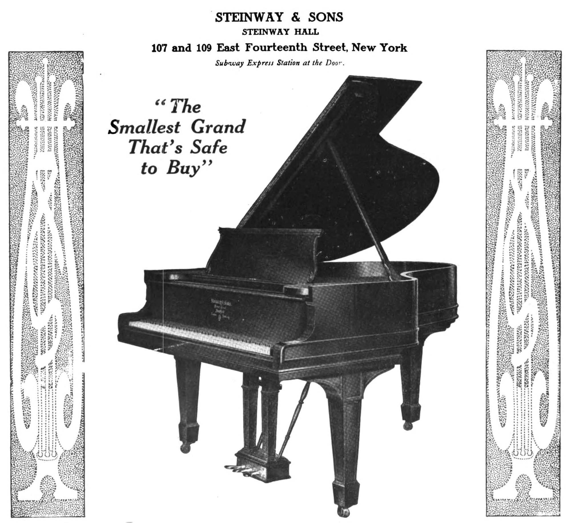 An advertisement in Country Life in America (December 1910) for a Miniature ebonized Steinway grand of the type Mahler had “harpsichordized” for his New York Philharmonic tours.