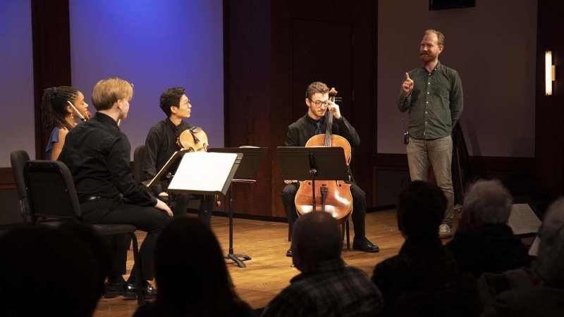 Before each concert of the Winter Festival, CMS Co-Artistic Director and cellist David Finckel led a pre-concert lecture on the quartets being performed. He was joined by violinists Sean Lee and Arnaud Sussmann and violist Matthew Lipman, who performed live exerpts from the works.